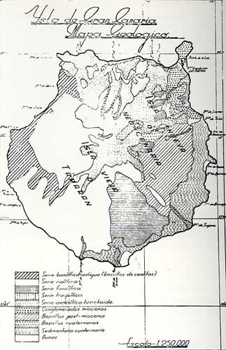 Mapa geológico de la isla de Gran Canaria, según Simón Benítez Padilla