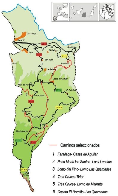En este sentido cabe destacar que este municipio cuenta con tres elementos de interés para la consolidación de una red municipal de senderos: por un lado, los distintos equipamientos de ocio y recreo repartidos por el municipio; en segundo término la oferta turÃstica localizada en la zona de medianÃas, fundamentalmente de casas rurales y, por último, destacar también la existencia de un inventario pormenorizado de la red de senderos municipales fruto de un exhaustivo trabajo realizado por la Agencia de Desarrollo Local.Los caminos que se acondicionarán a través de este proyecto serán: Farailaga-Casas de Aguilar; Paso MarÃa Los Santos-Los Llanotes; Lomo del Pino-Lomo Las Quemadas; Tres Cruces-Tiriol; Tres Cruces-Lomo de Marente (por Bascamao y El Marqués); Cuesta El Hornillo-Lomo Las Quemadas.Las actuaciones a realizar en cada uno de éstos serán la eliminación de rastrojos, material vegetal seco y malas hierbas; eliminación y poda de material propio de la zona que haya colonizado el camino; reconstrucción de pequeños elementos naturales no vegetales que marquen los márgenes de los caminos (piedras, muros, etc.) y, finalmente, recogida de todos los residuos y traslado al Punto Limpio. FUENTE: GABINETE DE PRENSA DEL AYUNTAMIENTO